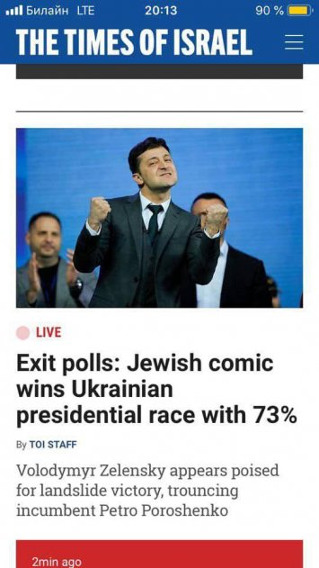 «Ну шо, украинские фошызды опять проголосовали за еврея! Владимир Александрович Зеленский – новый избранный президент. И ваще: Владимир Борисович Гройсман – премьер-министр; Вадим Зиновьевич Рабинович – депутат Верховной Рады; Игорь Валерьевич Коломойский – олигарх. Остаётся только ВСУ сделать такими же сильными и эффективными, как ЦАХАЛ, и… Нет, с этими украинскими фошыздами явно что-то не то!!!»