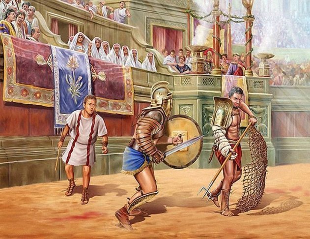 Тема гладиаторских боев неизменно присутствует в любом художественном фильме о Древнем Риме. Но на самом деле римская публика не была такой уж кровожадной, хотя и любила посетить разного рода зрелища. Как свидетельствуют подлинные римские хроники, решение о смерти или помиловании пораженного бойца мог принять только лично император.