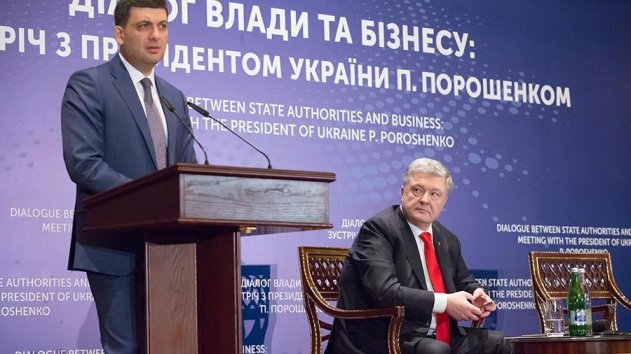 Действующий президент Украины Петр Порошенко (справа) и премьер-министр Украины Владимир Гройсман на встрече с представителями Европейской бизнес-ассоциации в Киеве