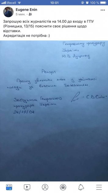 Тем временем в самой ГПУ, похоже, намечается полномасштабная революция. 24 апреля огласке был предан очередной рапорт прокурора Кулика, где он обвиняет замов Луценко — Стрижевскую и Енина в противоправных действиях по одному из уголовных производств, которое выступает ответвлением «дела Курченко».