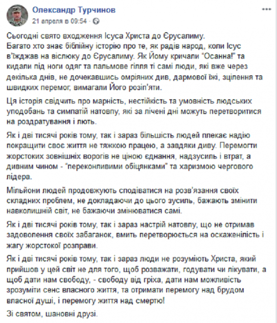 «Не думаю, что новый президент Владимир Зеленский оставит Турчинова, но если он не уволит его сразу, то вряд ли уволит потом», — сказал Царёв.
