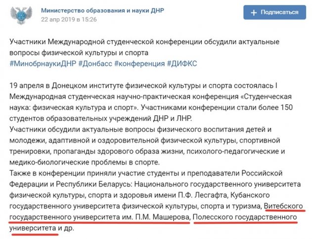 В русофобском сегменте белорусских соцсетей и Тelegram-каналов появилась волна возмущения о сотрудничестве Витебского госуниверситета им. Машерова с учебными заведениями ДНР и ЛНР.