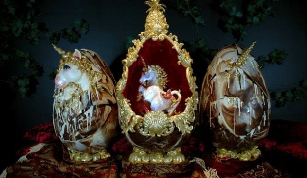 Кто из нас в детстве не верил в существование мифических существ, приходящих во снах, после прочтения сказок и просмотра фильмов? И пока мы продолжаем мечтать, строя волшебные замки, катаясь верхом на единорогах, Choccywoccydoodah во главе Кристин Тейлор создали впечатляющую серию пасхальных яиц, олицетворяющих рождение фантастических созданий, каждое из которых весит сто килограмм и стоит двадцать пять тысяч фунтов стерлингов за набор из трёх штук. Уникальность этих яиц заключается в том, что все они сделаны из очень дорогого качественного бельгийского шоколада и при этом выполнены в стиле лучших традиций XIX века, придающих особый шарм и толику волшебства этим шоколадным произведениям искусства.