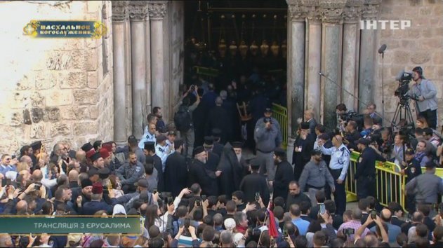 Иерусалимский Патриархат не допустил делегацию созданной Петром Порошенко раскольнической «Святейшей церкви Украины» («СЦУ») к службе на схождение Благодатного огня, которую проводят совместно представители поместных автокефальных Церквей в Великую субботу в иерусалимском храме Гроба Господня.