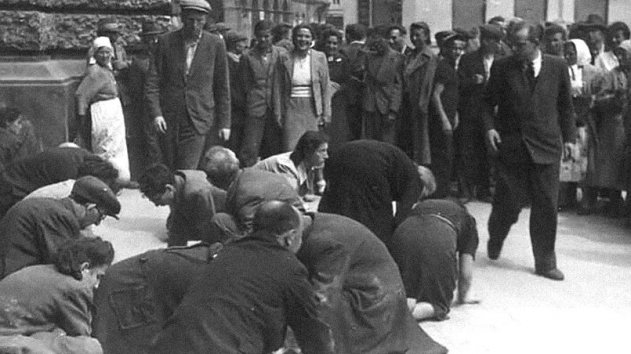 Львовский погром — еще одно массовое побоище, которое произошло в первые недели войны. 28 июня 1941 года советские войска отступили из Львова. Уже через два дня, 30 июня, одновременно со входом немецких войск так называемая народная полиция — Организация украинских националистов* (ОУН, запрещена в РФ) — начала облавы на евреев. Цель акции — выявление преступных элементов, сотрудничающих с советской властью.