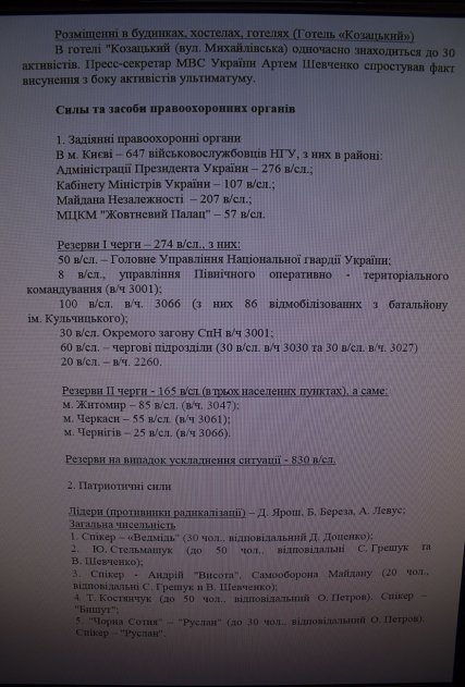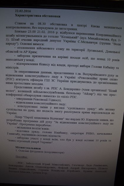 Вот этот второй документ как раз и есть такая обобщённая справка штаба АТЦ при СБ Украины от 22.02.2016. Напомню, что это была очередная годовщина Майдана, и в Киеве проходили массовые мероприятия.