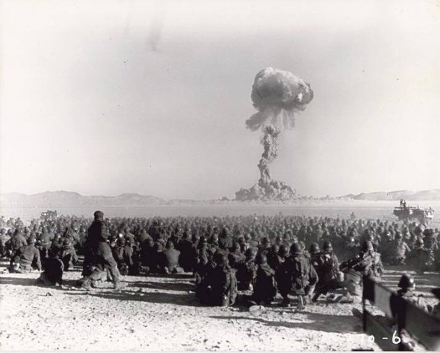 Перед испытаниями войска проходили психологическую обработку. Молодым солдатам рассказывали, как это круто – атомный взрыв, объясняли, что они получат впечатления, которые больше не получить нигде, говорили, что у них будет шанс поучаствовать в исторических фото на фоне атомного гриба, таких, которыми мало кто потом сможет похвастать. Им говорили, что страх перед радиацией — иррационален. И солдаты верили.