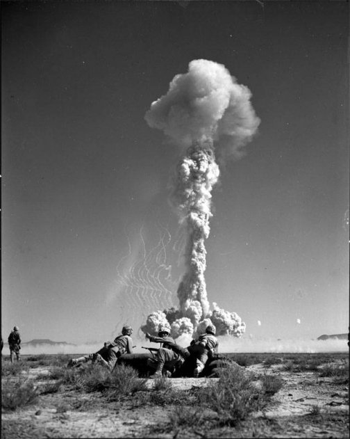 В ходе уже упоминавшихся учений Desert Rock I («Пустынная скала 1») от 1 ноября 1951 года, 11 тысяч военных наблюдали атомный взрыв более 18 килотонн, затем часть сил совершила пеший марш-бросок в сторону эпицентра с остановкой и отходом на отметке в один километр от него.