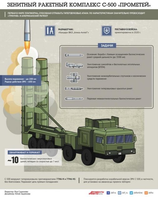 Ранее сообщалось, что система С-500 завершает цикл государственных испытаний и с 2020 года начнет поступать в войска.