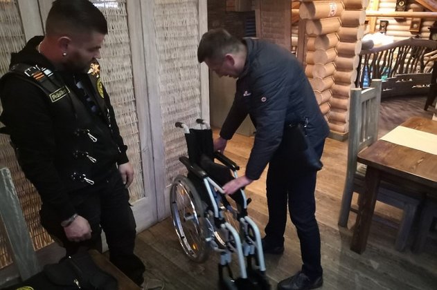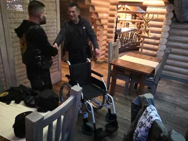 Помощники Яна вкатывают новенькую коляску и договариваются в ближайшие дни вместе с Андреем Лысенко объехать самые нуждающиеся семьи.