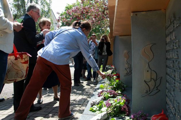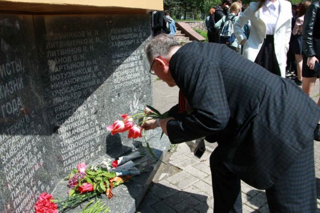 Присутствующие почтили память погибших журналистов минутой молчания, а затем к подножию мемориала были возложены живые цветы.