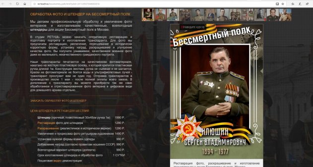 В рекламе коммерческой структуры, предлагающей свои услуги по оформлению акции «Бессмертный полк» фамилия знаменитого советского авиаконструктора Ильюшина написана с ошибкой.