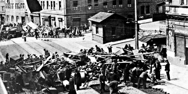 Тем временем в Праге началось. Жители города вывешивали чешские знамёна и открыто посылали немцев. Чешское радио призвало войска и полицию протектората явиться на Шверинову улицу. Туда же кинулись части вермахта и СС, которых в миллионном городе было около десяти тысяч. У здания радиостанции разгорелись первые бои, вскоре перекинувшиеся на весь город. Он покрылся баррикадами и пожарами.