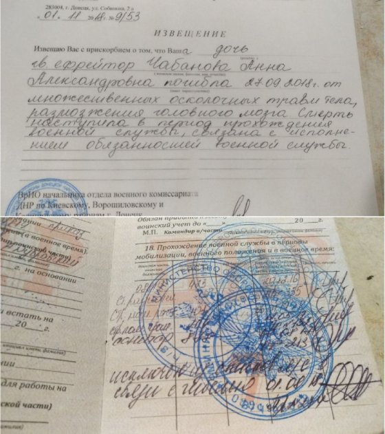 …Сидим, листаем документы… Вызывает вопросы Анин военный билет, который закрыт по причине ее «исключения из личного состава в связи с гибелью 1 августа 2018 года». Но ведь Аня погибла 27 сентября! Что это: случайная описка или чья-то преднамеренная халатность?