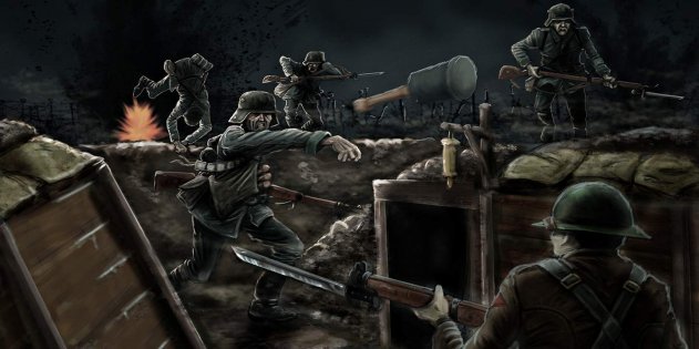 Во время Первой мировой войны немцы считали, что оставлять противника в покое никак нельзя даже на «спокойных» участках фронта. Дерзкие и хорошо подготовленные рейды в чужие окопы были их своеобразной «визитной карточкой». Как они проходили — в нашей статье. На Западном фронте без перемен Позиционная война учила терпению и кропотливой работе. Днём по обе стороны жизнь по возможности замирала, но с закатом солнца все развивали лихорадочную деятельность. Под покровом темноты ремонтировались позиции и отрывались новые, сменялись подразделения, на передовую доставлялись припасы. Активность выходила и за собственные передовые окопы: на нейтральной полосе появлялись патрули и дозоры, ремонтировались и обновлялись проволочные заграждения, в направлении противника копались новые сапы и траншеи. Ночь была временем смелых, но осторожных. Время от времени на нейтральной полосе вспыхивали стычки с самым непредсказуемым результатом, где всё решали секунды, а порой и одна вовремя брошенная граната. Но главное — ночь была самым удобным временем, чтобы большой компанией заглянуть на позиции противника. Хороший план — половина дела К весне 1916-го года немцы по праву считали себя мастерами рейдов и ночной охоты, превосходящими в этом как противников, так и союзников. Главным их преимуществом было сочетание разумной инициативы и тщательной подготовки. Жизнь не стояла на месте, и противники учились на своих ошибках. В прошлом остались отчаянные вылазки полудюжины смельчаков за вражескими часовыми — плотность войск повышалась и укрепления становились все лучше, теперь такие предприятия были верным самоубийством. К началу 1916 года метод захвата пленных, которым немцы с успехом пользовались весь 1915 год, признали устаревшим. Они специально обстреливали артиллерией вражеские проволочные заграждения, а когда ночью противник выходил из своих окопов для их починки, устраивали засады. Но теперь противник сопровождал свои рабочие партии многочисленным охранением, заранее выбрасывая на нейтралку группы гранатомётчиков и пулемётчиков, что сделало такие операции слишком затратными для немцев. Для каждого рейда во вражеские окопы, предпринимаемого, как гласило немецкое наставление, «с целью нанесения потерь, захвата пленных и трофеев, деморализации противника и подъёма духа наших войск», требовалась тщательная подготовка. Место рейда выбиралось на основе внимательных наблюдений за передовой противника; требовался участок, куда можно было подойти и отойти как можно более скрытно, с повреждёнными или уничтоженными проволочными заграждениями, а также непростреливаемый с флангов. Главной новинкой 16-го года стала возрастающая роль артиллерии в таких рейдах, в них задействовали по несколько десятков батарей и шесть-десять тысяч снарядов. Артиллеристы должны были сначала смести шрапнелью вражеские секреты на нейтральной полосе, добить проволочные заграждения, загнать вражеских бойцов в укрытия, а затем изолировать цель рейда от подкреплений, окаймив её огнём. Кроме того, от них требовалось давить известные артбатареи противника, чтобы те не помешали рейду. Чтобы запутать врага, такие артиллерийские программы проводились сразу на нескольких участках. Число участников рейда варьировалось от 20 до 120 человек (хотя бывало и больше) — в зав