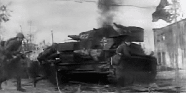 А затем в битве под Москвой немцев впервые разбили. Теперь уже захватчикам придётся познать, что такое штурмовка с воздуха и танковые атаки.