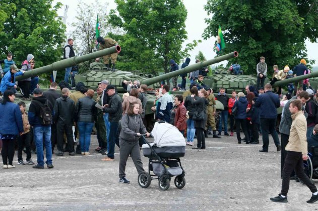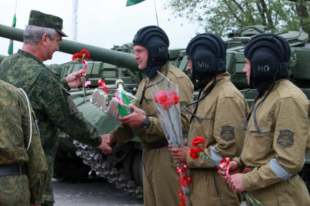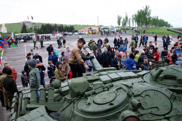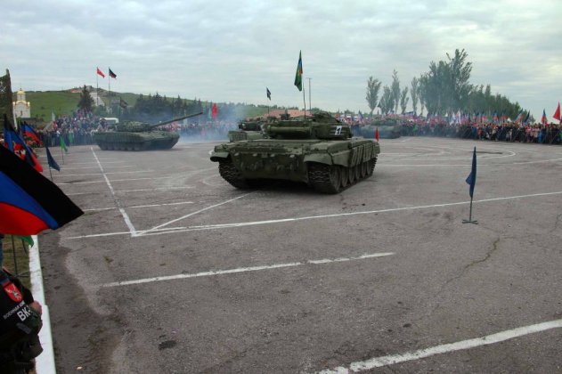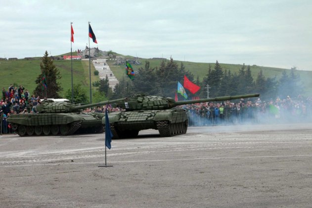 Необычный подарок ко Дню Победы и Дню Республики для гостей и жителей ДНР подготовили танкисты отдельного танкового батальона Народной милиции Донецкой Народной Республики, которым командует полковник Петр Ручьев («Дизель»). Сегодня, 10 мая, на открытой площадке у подножия мемориального комплекса «Саур-Могила» они показали «танковый вальс». Как сообщает корреспондент официального сайта Донецкой Народной Республики, посмотреть выступление танкистов собрались порядка тысячи человек. Свое мастерство показали экипажи основных боевых танков Т-72.