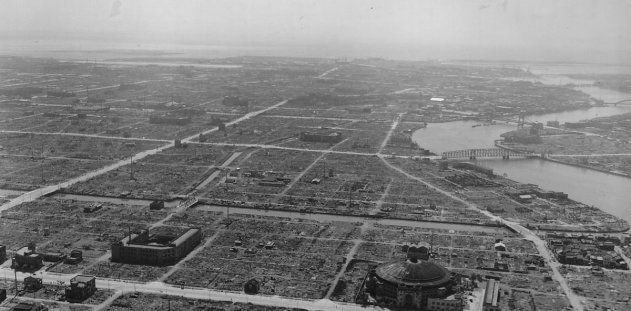 «Великое» токийское землетрясение 1923 года и толчки земли с последовавшими затем пожарами вызвали гибель – по официальным данным – приблизительно 100 тыс. человек. Еще 43 тыс. человек пропали, и из этой цифры по меньшей мере 25 тыс. также были занесены в список погибших. В результате землетрясения десятки тысяч человек оказались в ловушке под рухнувшими зданиями, но возникший пожар перемещался гораздо медленнее, чем ужасающая набегающая волна пламени, которая беспрепятственно катилась по Токио в ранние утренние часы 10 марта 1945 года. В этот день приблизительно за 6 часов выгорело 17 квадратных миль городской территории Токио и было убито более 100 тыс. его жителей.