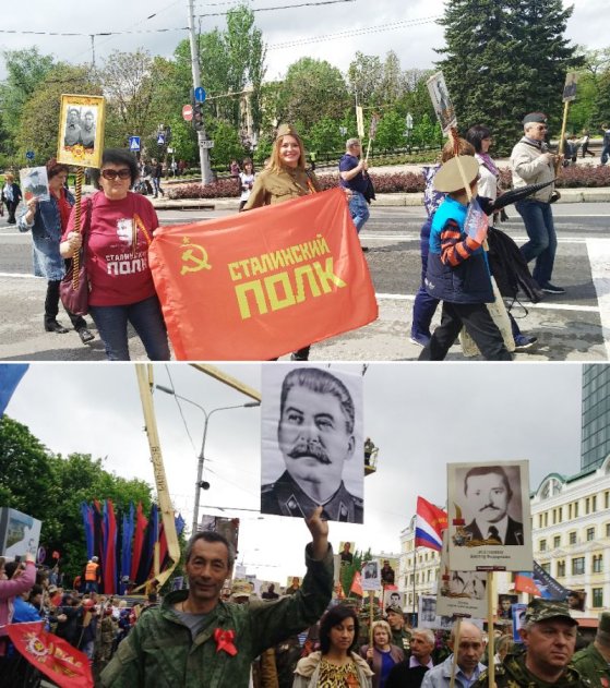 …В этом году, по сообщениям ряда СМИ, небывалой популярностью среди россиян пользуется Генералиссимус Советского Союза Иосиф Сталин. Портреты и флаги с его изображением, а также с изображениями героев-полководцев, выковавших ту легендарную Победу, можно было увидеть на шествиях «Бессмертного полка» во всех уголках России. Не стал исключением и российский Донбасс: здесь в составе общей колонны прошел «Сталинский полк». Среди инициаторов его проведения - экс-мэр Горловки Станислав Ким и донецкая общественница Анна Ильясова.
