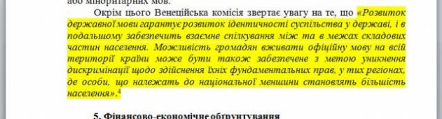 Украинские депутаты приняли скандальный закон №5670-д «Об обеспечении функционирования украинского языка как государственного». В пояснительной записке к нему они для убедительности сослались на европейские структуры, в частности, привели некоторые тезисы, высказанные Венецианской комиссией, выводы которой будто бы совпадают с содержанием этого закона