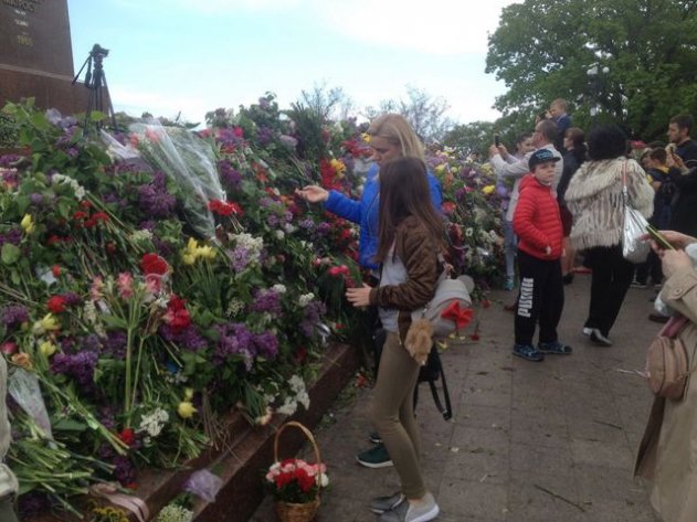 В Одессе к памятнику Неизвестному Матросу принесли рекордное количеству цветов, укрывших весь постамент: