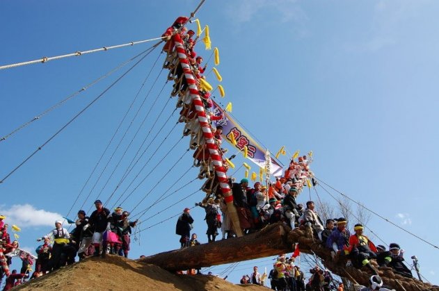 В Японии раз в шесть лет проводится фестиваль Омбасира, участники которого на огромных бревнах спускаются с горы. По уровню травматизма фестиваль стоит на одном уровне с забегом быков в Памплоне.