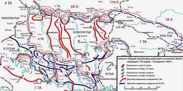 Если на 21 марта 1944 года положение немецкой группы армий «Юг» можно было назвать сложным, но стабильным, то неделю спустя она оказалась в глубоком кризисе. Стремительный бросок советской 1-й танковой армии М. Е. Катукова по тылам врага привёл к перехвату линий снабжения немецкой 1-й танковой армии генерала Хубе.