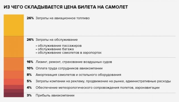 Царьград уже рассказывал, что покупка топлива – одна из главных статей расходов любой авиакомпании. В конечной цене билета топливо занимает около 26%. Еще 26% цены складываются из расходов на обслуживание самолётов в аэропортах, обслуживание пассажиров и обработку багажа.