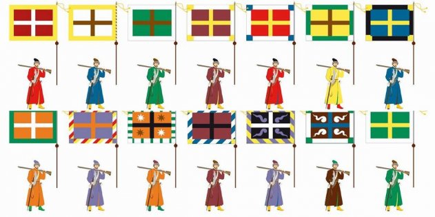 «Цветное платье» и сотенные знамёна московских стрелецких приказов, 1674 год