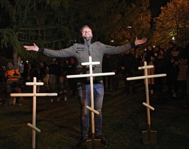 В Екатеринбурге всё делается как-то нарочито по методичке, с ритуалом. Уже и поскакали с призывом к крови, и самой кровью ритуально расписались. По-бесовски покривлялись перед оцеплением. Не хватает разве только спиленного креста или осквернённой святыни. Впрочем, оскверняют Храм, которого ещё нет. Это одновременно и повод, и реальный раздражитель для тех, «хто скаче».