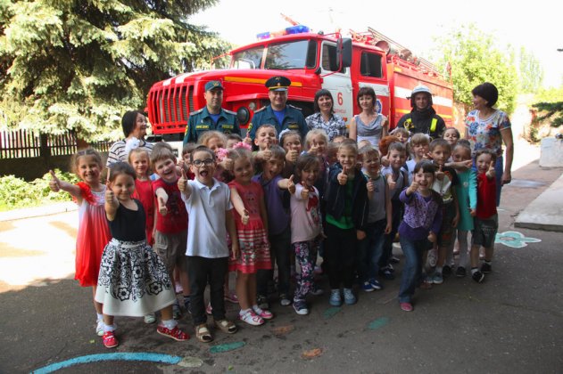 Сотрудники МЧС продемонстрировали малышам, как с помощью пожарно-спасательной техники бороться с огненной стихией. Затем детям предложили попробовать себя в роли огнеборцев, примерив на себя экипировку пожарных. Во время мероприятия малышей ознакомили с индивидуальными средствами защиты органов дыхания и спецодеждой, с помощью которой пожарные защищают себя от воздействия опасных факторов огня.