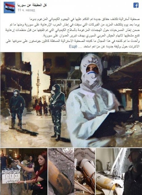 Австралийская журналистка заключила, что заявленная для трехсторонней агрессии Соединенных Штатов, Великобритании и Франции против Сирии в апреле прошлого года причина, таким образом, была основана на фотоподлоге предполагаемого удара ВВС САР двумя боеприпасами, наполненными ядовитым газом.
