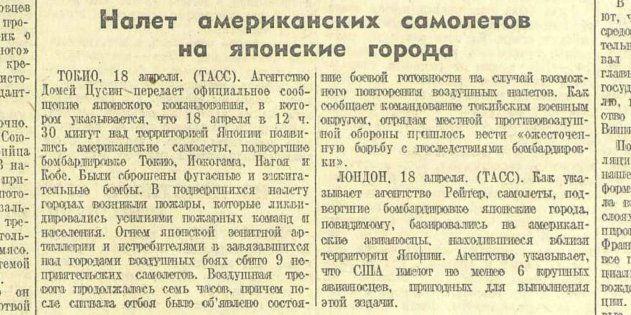 Сообщения о рейде Дулиттла в «Красной звезде» от 19 апреля 1942 года 3. Операция была согласована с китайским руководством