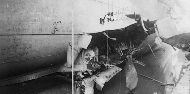 Находившийся в сухом доке лёгкий авианосец «Рюхо» получил прямое попадание 500-фунтовой фугасной авиабомбы. Результатом стала вот эта 15-метровая пробоина в левом борту (для понимания масштаба в ней удачно стоит человек). 7. B-25, севший около Владивостока, был конфискован, экипаж — интернирован