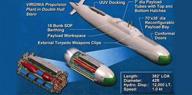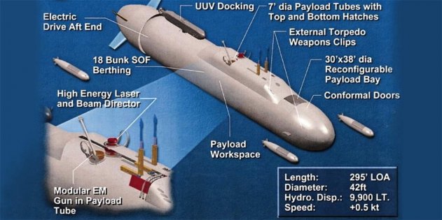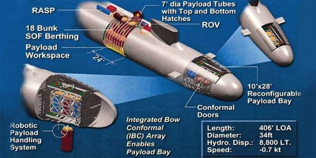 Точно так же, как в шахтах модернизированных ракетоносцев «Огайо», там могли разместить крылатые ракеты «Томагавк», дополнительные кубрики для пловцов, различные подводные и летающие беспилотники, вертикальное орудие или зенитно-ракетную установку, поднимаемую на штанге.