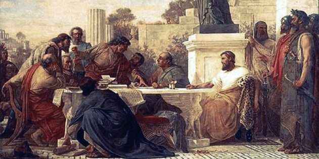 Справка. Вообще, слово «Византия» все-таки употребляли на излёте существования Западной Римской империи — видимо, чтобы обозначить: вот тут старый Рим, а здесь — вовсе даже Византия. Одна из хроник тех времён прямо так и называется — «Византиака». Но в V веке с западной империей случилась известная неприятность, она прекратила существование, и Римская империя снова стала одна. Со столицей в Константинополе. Поэтому и термин «Византия» выпал из употребления за ненадобностью этак на тысячелетие.