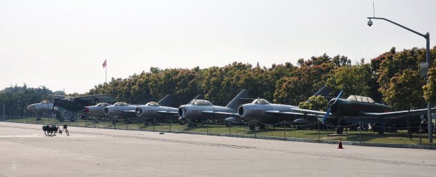 На крыше здания расставлены различные образцы авиационной техники Китая.