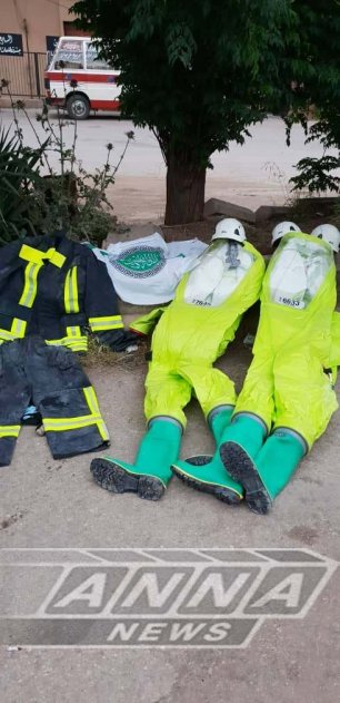 Костюмы химической защиты «Белых касок», обнаруженные в Калат Аль Мудике