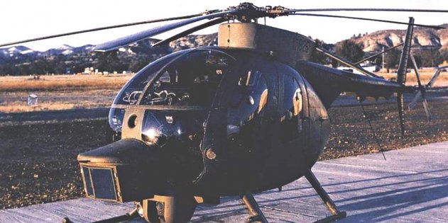 ОН-58Х — хорошо видны удлинённый нос и кожух на автомате перекоса В последнее время на фото попадались ещё несколько вертолётов, явно модифицированных для снижения их заметности.