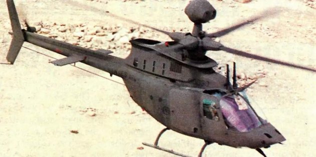 Стелс вариант UH-60 «Чёрный ястреб» В начале 90-х параллельно программе RAH-66 в «Белл» начали программу «Оптимизированный летательный аппарат» (Optimized Aircraft) по созданию частично незаметного варианта разведывательного вертолёта OH-58D «Кайова Уорриор». Целью было уменьшение ЭПР (эффективной площади рассеивания) вертолёта в лобовой проекции, снижение уровня шума и тепловой заметности. Нос вертолёта удлинили для экранирования кабины, ротор уменьшили, автомат перекоса получил радиоотражающий кожух, была установлена система охлаждения выхлопа, а двигатель экранировали теплопоглощающим материалом.