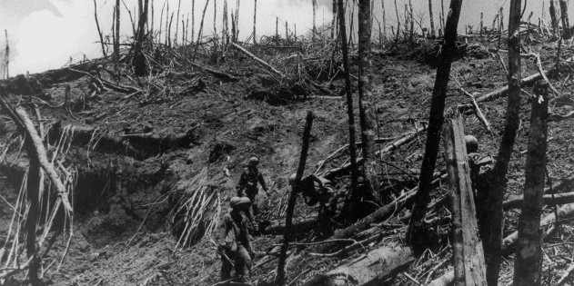 Через несколько дней боёв гора напоминала место атомного взрыва — перекопанная земля, пни вместо деревьев, воронки… А пехота, в крови и грязи, все лезла на неё. Не вышло? Повторяем.