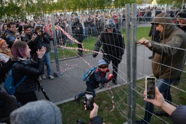 Это фото не видел только ленивый. Очень красочное и яркое фото на мой взгляд. Посмотрите на тех, кто в первых рядах. Лично у меня вопросов нет и быть не может. Для остальных поясню – мальчика толкают на забор и рядом с ним как бы случайно оказываются несколько человек, у которых в руках фотоаппараты, причем далеко не любительские мыльницы. Именно фотоаппараты (вон парочка таких деятелей стоит левее створок забора).