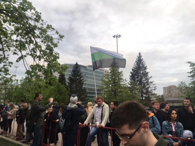 И, наконец, кульминационный момент. На четвертый день протеста появился в Екатеринбурге флаг «уральской республики». Уральские борцуны недвусмысленно намекнули на выход Урала из состава Российской Федерации.