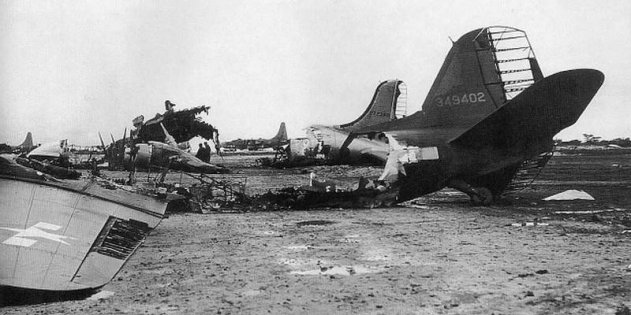 Во-вторых, удалось уничтожить то ли семь, то ли восемь (цифры исследователей расходятся) американских самолётов — «корсары», транспортники С-54 и флотский вариант «Либерейтора» — РВ4Y-2. Повредить вышло 26 — «корсары», «хеллкэты», те же РВ4Y и несколько транспортников. Сгорел топливный склад на 70 тысяч галлонов. Погибли два человека, ранения получили 18.