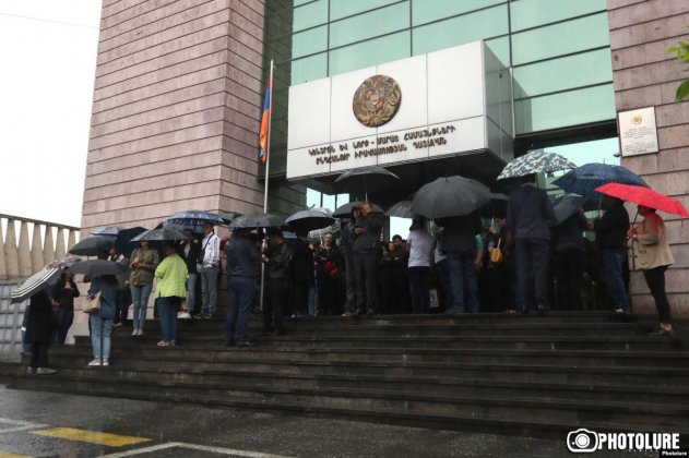 Судья общей юрисдикции административного округа Шенгавит Давид Балаян пришёл на работу вовремя и застал здание суда обложенным пикетами.