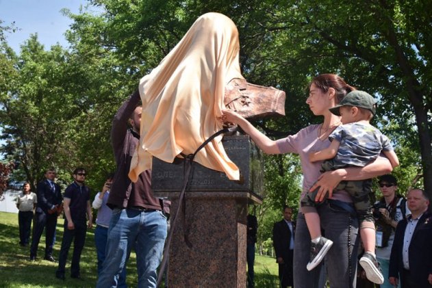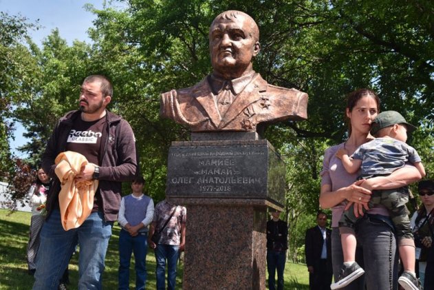 Право открыть памятник Герою Донецкой Народной Республики Олегу Мамиеву было предоставлено самым близким людям – супруге и сыну.