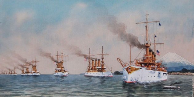 «Великий белый флот» — символ американской военно-морской мощи начала XX века. Картина 1909 года из коллекции Военно-морского колледжа США ПЛАН «ОРАНЖЕВЫЙ» — боевые действия против Японской империи и её подмандатных территорий.