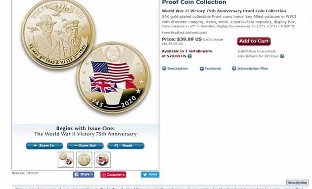 Мне 85 лет, и я принадлежу к поколению Второй мировой войны. Так как приближается 74-я годовщина Победы над нацистской Германией, американская компания заранее выпустила монету в честь 75-летия Победы.