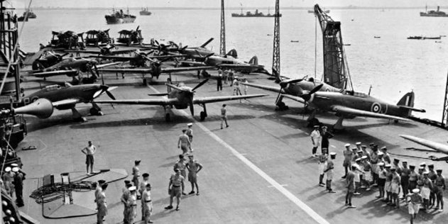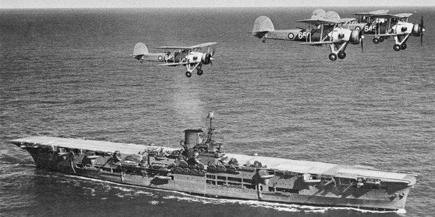 Британские «Суордфиши» пролетают над авианосцем «Арк Роял», 1939 год К началу Второй мировой британская палубная авиация представляла из себя крайне примечательное зрелище из более чем странных самолётов, своеобразных кораблей и крайне скромных идей о роли авиации в войне на море. Британские авиаторы были очень мужественными и умелыми людьми, выжимавшими максимум из того, что имели.