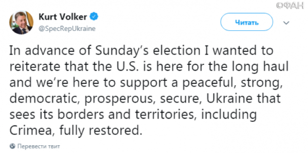 Итак, мы с вами видим, что в первых рядах рядом с Зеленским находятся медийные персоны, его друзья, активные борцы с коррупцией, сторонники Евроинтеграции, доверенные лица олигарха и преступника Коломойского, поклонники «котлов» в генеральских погонах и, что самое интересное и потрясающее во всем этом балагане – приспешники прежней украинской власти. Одним словом – люди со светлыми лицами, которые готовы повести Украину в светлое будущее. Вот только меня терзают смутные сомнения: а способны ли они управлять государством? Ведь из них больше половины не имеют абсолютно никакого опыта работы на государственной службе, не говоря уже про управление страной. У меня создается впечатление, что над Украиной проводится какой-то страшный и адский эксперимент. И это действительно так. На Украине, начиная с конца 2013 года, произошла да и продолжает происходить целая череда трагических событий. Я бы не сказал, что это череда каких-то случайных событий: майдан, гражданская война, хаос и безвластие, воровство и коррупция. Все это отрежиссировано заокеанскими кукловодами, которые молча наблюдают за происходящим, преследуя свои корыстные цели. И вот тому подтверждение. Спецпредставитель Госдепартамента Курт Волкер заявил, что США пришли на Украину надолго. «В преддверии выборов я хотел бы вновь заявить, что США здесь надолго», — написал в своем микроблоге в Twitter Волкер. По его словам, США находятся на Украине, «чтобы поддержать мирную, сильную, демократическую, процветающую, безопасную» страну.